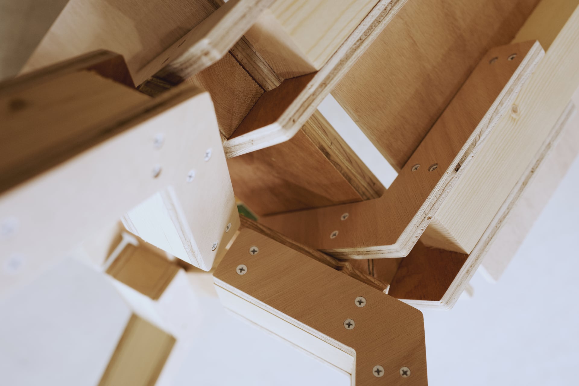 ホームセンターにある40×40mmの木材を使い、自分だけのオリジナルチェアを作ることができる利点を生かしたデザインです。